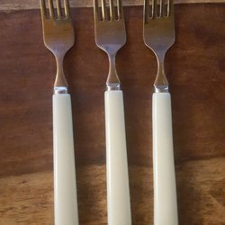 3 stk. bestikgafler (Dessert) i rustfrit stål med plasthåndtag / Retro