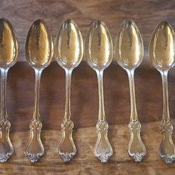 6 sølvbestikskeer / Retro / Mærket: Henniger