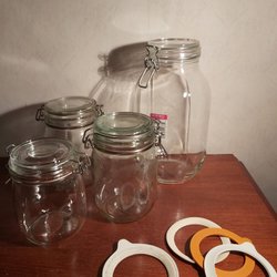 Glasbeholdere med glaslåg. 'Konserveringsburkar.