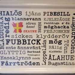 Bricka med skånska ord och uttryck