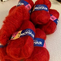 9 nøgler Kattens Mohair, klar rød/julerød, 91% mohair, 7% uld og 2% nylon
