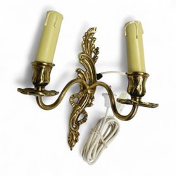 Væglampe i messing – dobbelt lysholder i rokokostil, anden halvdel af det 20. århundrede