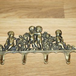 Ældre vintage bøjle håndklædeholder messing keruber nøgleholder kroge