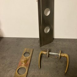 Dørvrider og nøgleskilt i messing