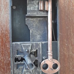Stor gammel nøgle, siddet i et gammelt udhus