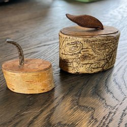 Näver Trä ene 70-tal Burk 14cm diameter 9cm + Liten, Skål på fot lock Tårtknivar