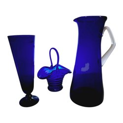 Sæt med 3 blå designgenstande i glas – i stil med Monica Bratt for Reijmyre & Eda