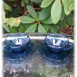 Paret Vereco kaffekop med hærdet glas blå gennemsigtighed 70'erne Vintage Frankrig
