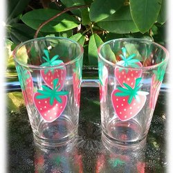 Juiceglas Børneglas med store jordbær på Retro Romantik Fremragende stand