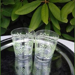 Teglas 4 motiver dekorgravering i glasset med bær og planter