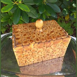 Låsekrukke, låsekasse af træ med indlæg signeret