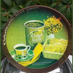 Underbar pladebrik med cirkelkaffemotiv med kaffekopper vintage Perfekt til højtid