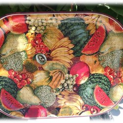 Flot bakke i melamin med motiv af kaffebønner i kurv.Pæn stand