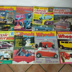 Samling af Wheels Magazine og Classic Motor blade fra 1980'erne