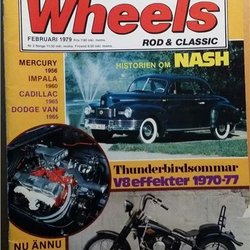 WHEELS FEB 1979 HISTORIEN OM NASH,MERCURY,IMPALA 60,CADILLAC 65,FLATHEAD HARLEY