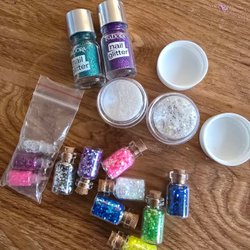 Glitter til negle og håndværk, 15 dåser og flasker