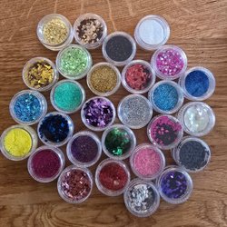Glitter i forskellige farver og former