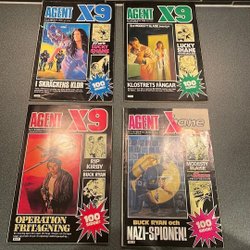 Dyk ner i en värld av hemliga uppdrag, farliga skurkar och oförglömliga äventyr med Agent X9 serietidningar. Sedan dess debut har Agent X9 varit i framkant av spännings- och äventyrsgenren, och skapat en stark följarskara av hängivna läsare genom åren. Med dess fängslande berättelser och levande illustrationer har Agent X9 blivit mer än bara en serietidning – den är en institution inom agentgenren. Varje upplaga erbjuder läsaren en biljett till en värld av internationellt spionage, där varje sida överskrider den nästa i spänning. Agent X9 har gett oss många minnesvärda stunder genom klassiska titlar som "De förrädiska diamanterna" och "Jakten på den försvunna skatten". Dessa tidningar, rika på action och intriger, har gjort Agent X9 till en av de mest älskade serietidningarna genom tiderna. Med en perfekt blandning av spänning, drama och äventyr har Agent X9 alltid lyckats hålla sina läsare på tåspetsarna, ivriga att veta vad som kommer härnäst.