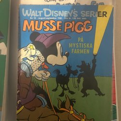 - Serietidningar med karaktärer som Musse Pigg, Långben och Pluto