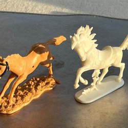 Brun hest Timpo Toys England. Hvid hest Germany. Vintage Hästleksaker. Samlere