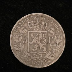 Belgisk 5 Francs - 1870 Sølv 90 %
