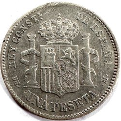 - Silver peseta-mynt från 1800-talet, när Spanien såg några av sina mest turbulenta tider.