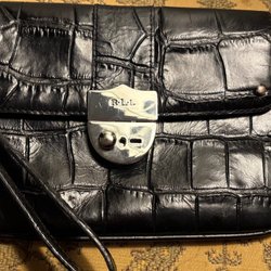 Sort Croc lædertaske fra Ralph Lauren.