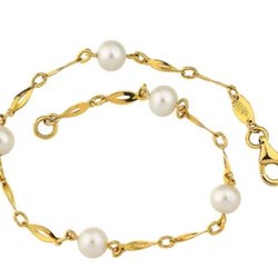 Armbånd i 18k ægte guld med ferskvandsperler