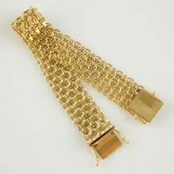 ARMBÅND, 18K, 19cm, 30,67g, guld, 5-radet X-led med stav, et led er lidt beskadiget,
