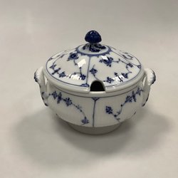 Royal Copenhagen Musselmalet Riflet Sennepskrukke med låg No. 137