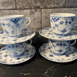 4 stk KAFFEKOPPAR MED FAT 1/1035 ROYAL COPENHAGEN MUSSELMALET HELBLOND