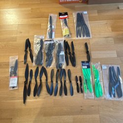 Stor samling af forskellige propeller til modelfly
