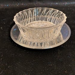 Krystal skål på nikkel sølv plade. Polerfri.16 cm i diameter.Ny for guldsmed