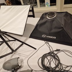 - Olika typer av studiobelysning, från softboxar till spotlights