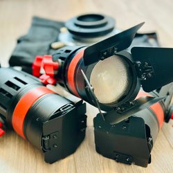 - Ett brett urval av ljusformare, inklusive paraplyer, reflektorer och diffusorer