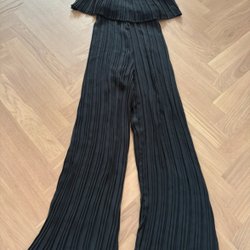 Sort jumpsuit med dyb udskæring og vide ben, str. XS
