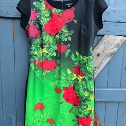 Klänning, roser. Grøn/rød/sort