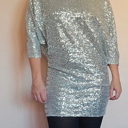 Sølvfarvet pailletkjole! (Retro,fest,M,nyår,glam)