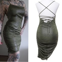 Asos scrunch kjole grøn guld straps open back ryg