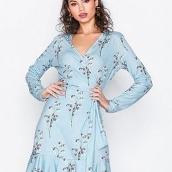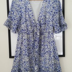 Beige blomstret kjole med bindebånd