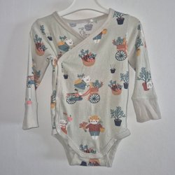 Super sød Lindex grå/flerfarvet omelottbody, størrelse 68 unisex
