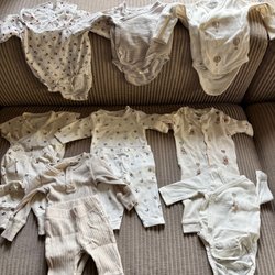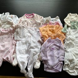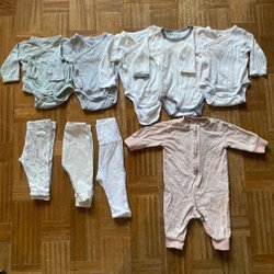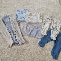Tøjpakke størrelse 50-56 med bodyer, bukser og pyjamas