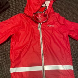 1st FUNK rød regnjakke, størrelse 120