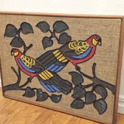 Rigtig Retro Tavla, Vægdekoration med Fåglar, Jute, sækkelærred, vintage kunsthåndværk