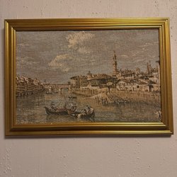 Vævet billede med flodmotiv