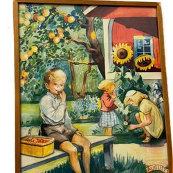 Vintage retro månedstavle Augusti måned af Kerstin Frykstrand perfekt i børneværelset