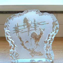 Glasblok, glasdekoration med rådyr - Vintage