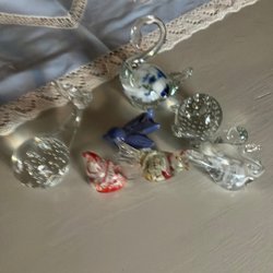 - Glasprydnader i en mängd former, från abstrakta skulpturer till detaljerade figurer.