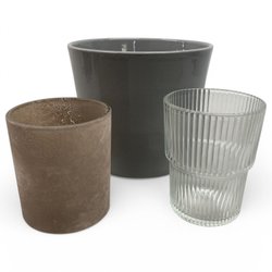 - Krukor i olika material, inklusive keramik, glas, metall och plast