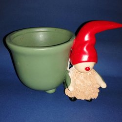 Julemanden ved grøn keramikkrukke